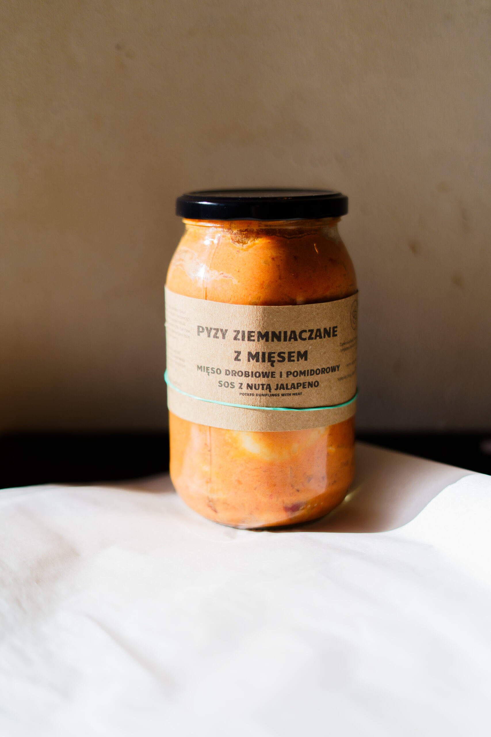 Mięciutkie pyzy ziemniaczane z farszem drobiowym w sosie pomidorowym z dodatkiem jalapeno/ 900 ml.